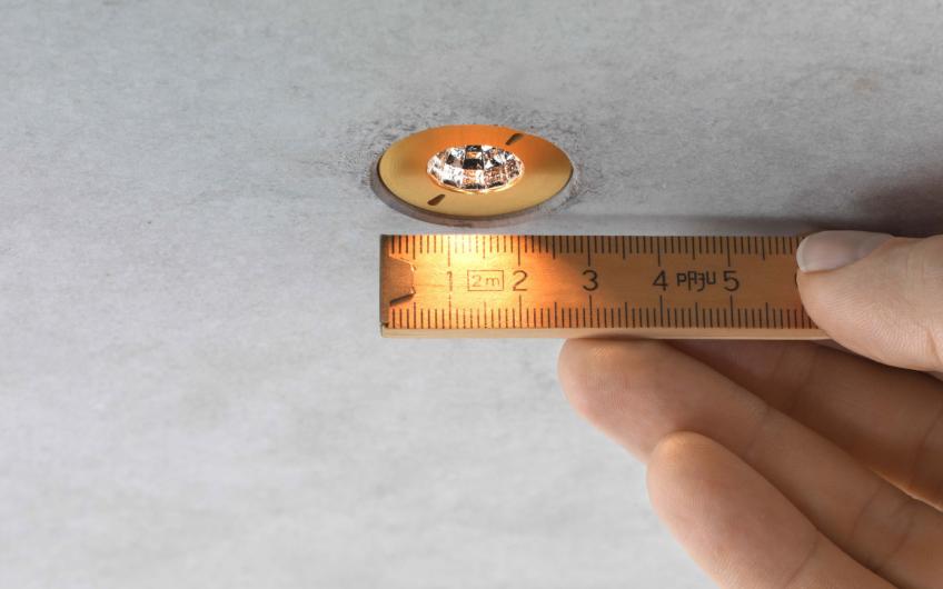 Der flächenbündig in die Oberfläche integrierte Lichtpunkt ist kaum wahrnehmbar. Und doch wird der Raum brillant erhellt Hochwertige Reflektoren lassen verschiedene Materialien in ihrer Tiefe wirken und ermöglichen eine dezente Klarheit. So entsteht mit dem DOT 28 eine reduzierte Licht-Lösung, die den Raum ungestört wirken lässt.