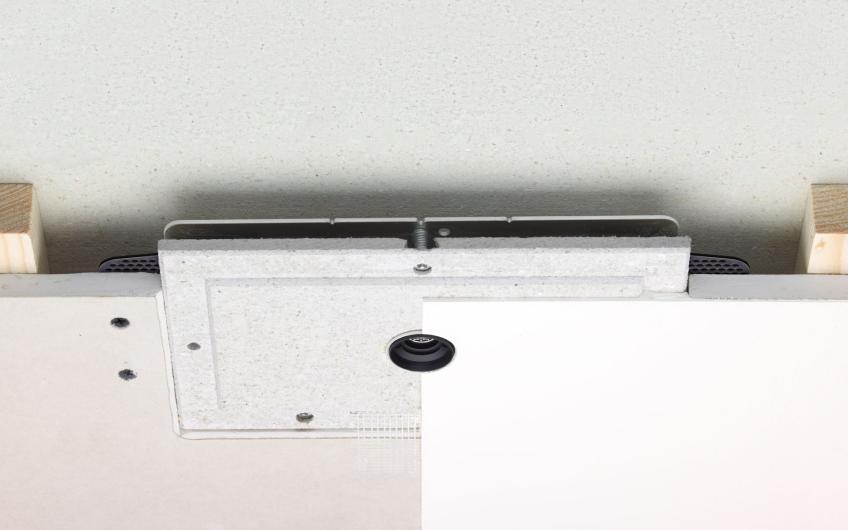 Hier handelt es sich um dasselbe Einbaumodul wie beim Massivbau. Mit einer Einbautiefe von nur 40 mm hat diese DOT SLIM – Variante immer in der Unterkonstruktion der abgehängten Decke Platz, etal, was in den Schichten darüber schief oder gerade läuft. Die justierbare Spachtelkante von 0 bis 6 mm hilft bei einer flächenbündigen Spachtelung. Außerdem sind die unterschiedlichen Anordnungs- und Bestromungsvarianten möglich, je nach Anforderung bis zu einer Lichtausbeute von 1220 Lumen. Das LED- Leuchtmittel ist wie immer von der Vorderseite wechselbar.