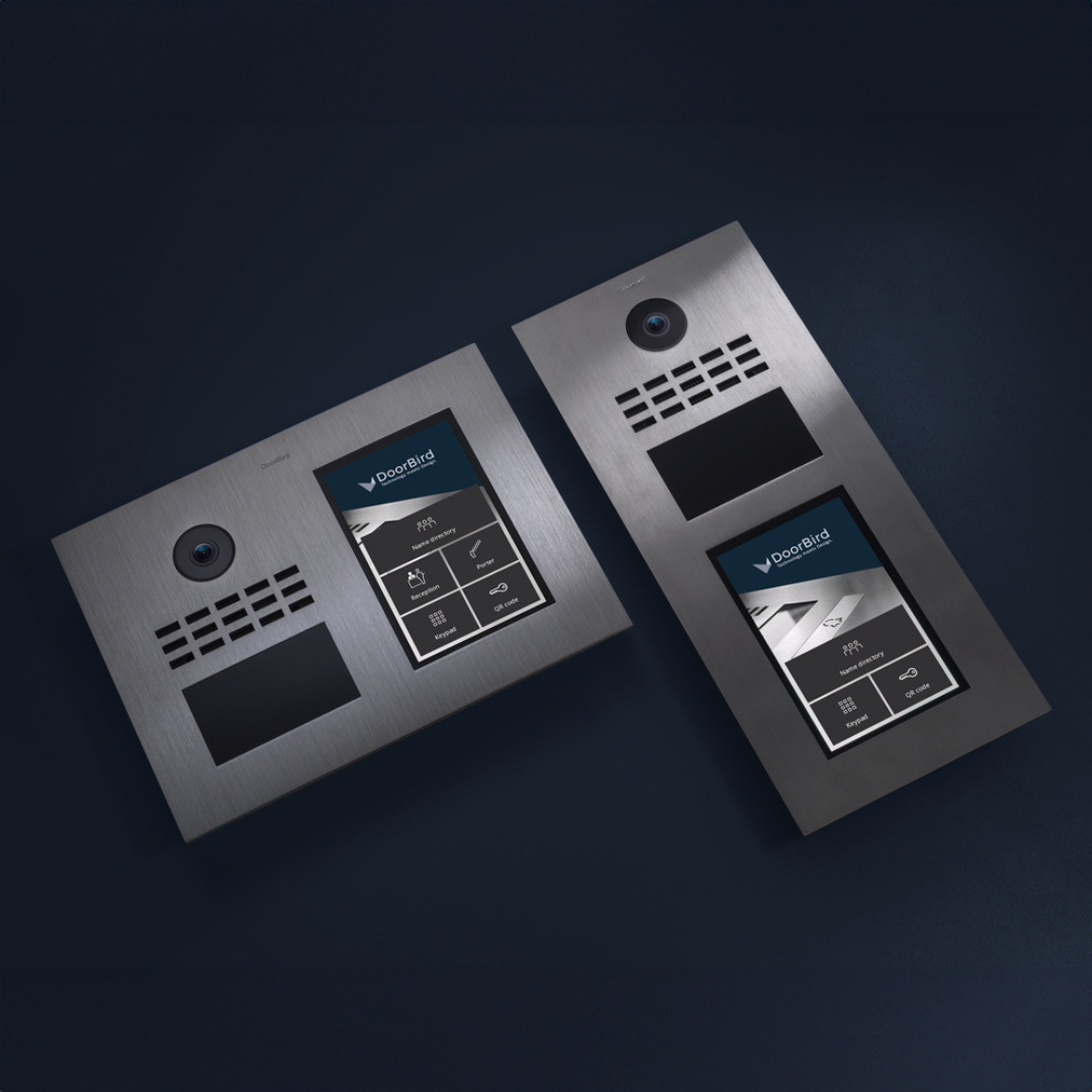 Die DoorBird Türstationen sind in über 50 exklusiven Oberflächen und Farben verfügbar. Kontrastreich oder dezent, als Aufputz- oder Unterputzmontage – die Türsprechanlage fügt sich perfekt in jede Umgebung ein. Die hochwertigen IP-Video-Türstationen können im DoorBird 3D-Konfigurator entworfen werden: mit individuellen Maßen, verschiedenen Klingeltasten und Gravuren sowie Modulen wie Keypad, Display oder Fingerabdruckleser.