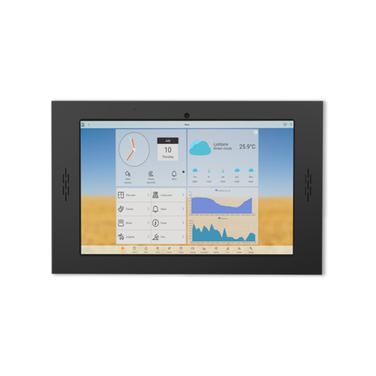 Bobcat ist ein 10" Android-Wandpanel mit einem hochwertigen Metallrahmen in Weiß oder Schwarz. Es unterstützt die Installation beliebiger Android-Apps und dient als vielseitige Schnittstelle für die Steuerung von Smart Homes und Smart Buildings.