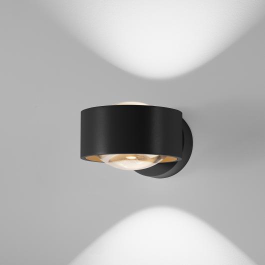LED-Wandstrahler mit dim to warm LED 2 x 6 W, CRI>90, Glaslinsenoptik und eingebautem Driver 230 V, dimmbar mit Phasenanschnitt-/ Phasenabschnittdimmer, Gehäuse aus massivem Aluminium, drehbar (350°), Akzentring wahlweise gold, schwarz oder weiß