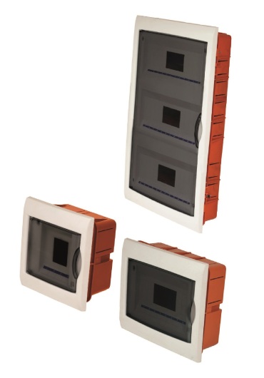 FAEG IP40 consumer unit enclosures are made of self-extinguishing shockproof polystyrene (box) and ABS, and feature a polycarbonate transparent door. Made of UV-resistant material they maintain color over time.