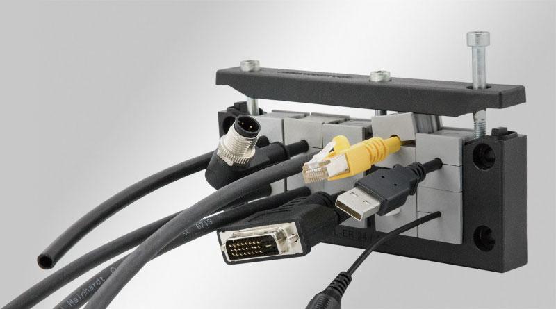 Mit der patentierten teilbaren Kabeleinführung von icotek lassen sich eine große Anzahl an Leitungen mit vormontierten Steckern (bis 65 mm Kabeldurchmesser) oder ohne Stecker (bis 75 mm Kabeldurchmesser) sehr schnell und sicher in Gehäuse, Schaltschränke sowie Maschinen einführen, mit bis zu IP66 abdichten (zertifiziert nach DIN EN 60529) und gleichzeitig gegen Zug entlasten (nach DIN EN 62444). Besonders praktisch ist eine solche Kabeleinführung zum Beispiel im Wartungsfall oder bei Nachrüstungen.