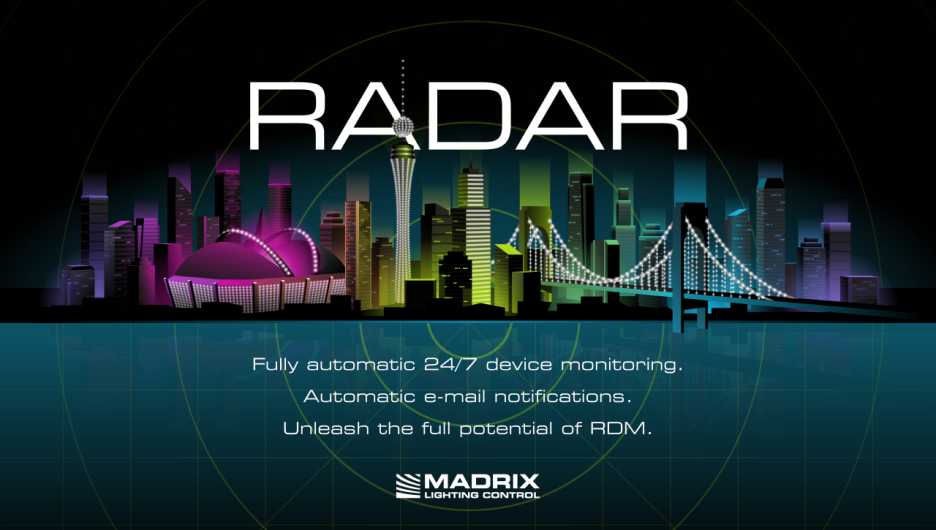 Supervise all of your lighting fixtures in a single software. Handle large amounts of RDM devices. It is a new kind of application that opens up entirely new possibilities for you and your clients. MADRIX RADAR includes automatic fixture patching, fully automatic 24/7 device monitoring, automatic e-mail notifications, and much more.