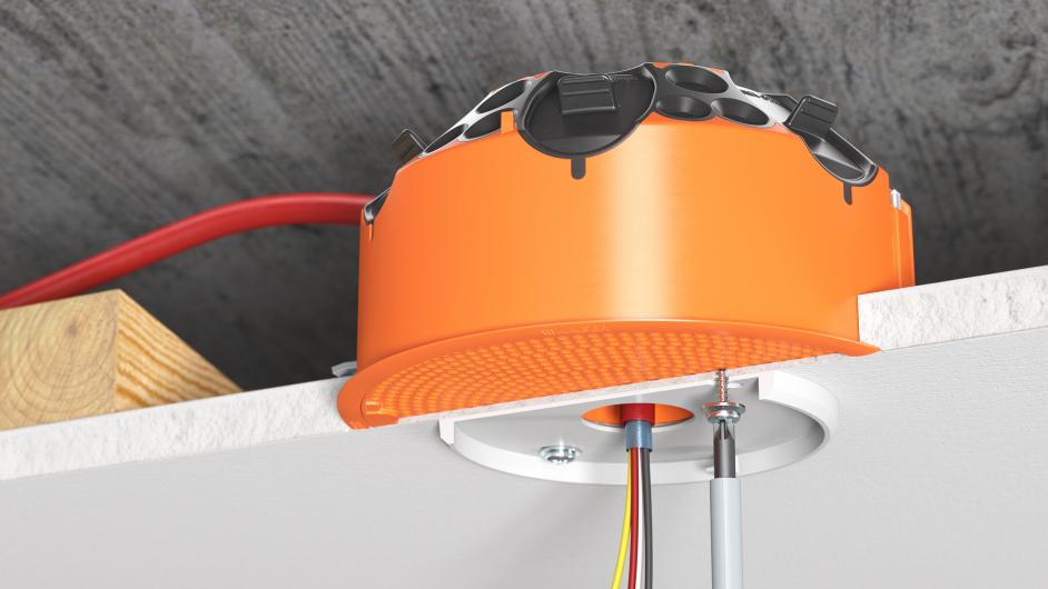 Mit dem neuen Einbaugehäuse O-range ECON® Universal 120 bietet KAISER maximale Flexibilität auf der Baustelle. Neben der Verdrahtung für eine gesamte Raumeinheit wird zudem die Montage diverser An- oder Einbaugeräte ermöglicht. Dafür wird, wenn nötig, die universelle Befestigungs- und Anschraubfläche im gewünschten Maß geöffnet und gewährt somit die saubere Montage von Einbauleuchten, Rauchmeldern u.v.m. Besonders montagefreundlich dank werkzeugloser Leitungs- und Rohreinführungen. Die Dichtungsmembranen garantieren eine dauerhafte Luftdichtheit und damit die energieeffiziente Elektro-Installation gemäß Gebäudeenergiegesetz (GEG).