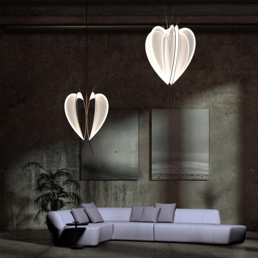 This lighting fixture consists of multiple parts that can be arranged and connected in different ways. This allows the user to customize the shape and size of the chandelier according to their preferences and needs.