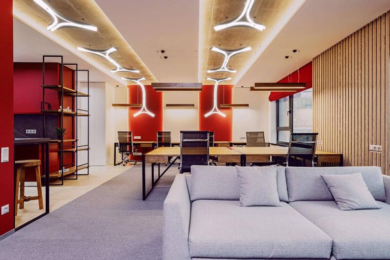 Das Trigon-Beleuchtungssystem wurde auf Basis einer proprietären Technologie entwickelt, die die Schaffung einer unbegrenzten Formenvielfalt von Beleuchtungslayouts ermöglicht – von einfachen, linearen Lösungen bis hin zu komplexen, in mehrere Richtungen gebogenen Formen. Die Grundelemente der Leuchtenkonstruktion sind: ein extrudiertes Kunststoffprofil, das das Licht streut, ausgestattet mit einem Aluminiumprofil als Wärmestrahler, in das ein LED-Streifen als Lichtquelle eingebettet ist