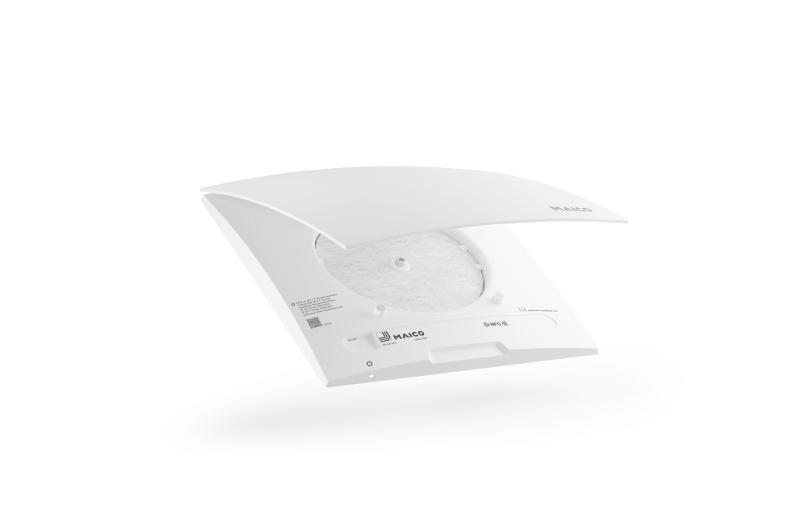 · Integrierte Steuerungs-/ Bedieneinheit: Über die App MAICO@NFC lassen sich weitere individuelle Einstellungen vornehmen, wie Einschaltverzögerung, Nachlaufzeit, Intervall oder Volumenströme.