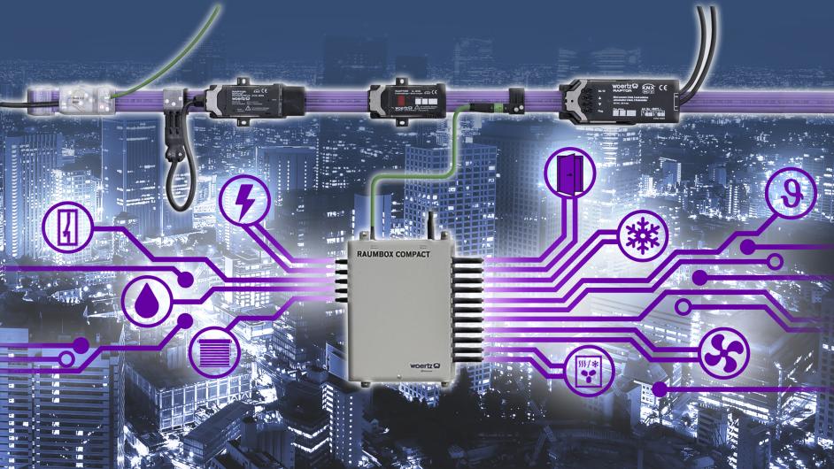 Für die zentrale Steuerung bietet Woertz eine vorprogrammierte, kompakte Raumbox mit ansteckbarer Verkabelung und eingebauter Sicherung, die aus der Ferne wiedereinschaltbar ist. Die Raumboxen können optimal verteilt und über das dezentrale Flachkabelsystem gesteuert werden. Sie sind die ideale Lösung für modulare Bauten, Hotelzimmer, Büros, Schulen, Universitäten und Krankenhäuser.
