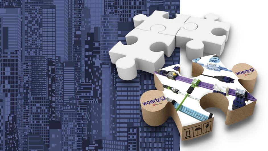 Woertz liefert komplette Flachkabelstränge mit vormontierten, beschrifteten und geprüften Einspeis- und Abzweigdosen zur Baustelle, die dann nur noch vom Installateur ganz einfach plangemäss zusammengesteckt werden müssen. Grosse Denkarbeiten vor Ort entfallen und Fehlermöglichkeiten werden reduziert.