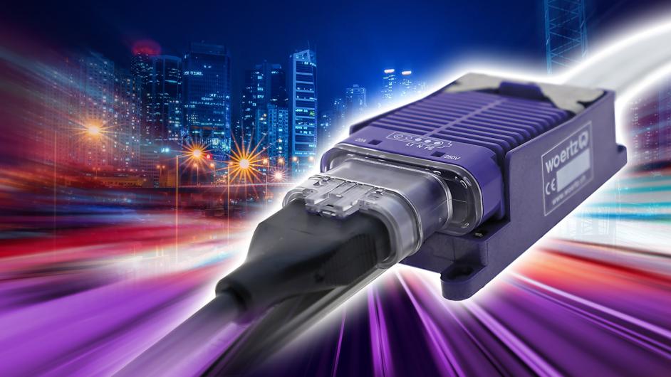 Illustration der Schnellmontage mit den neuen Woertz Schnellanschlussdosen und steckbarem Verbindungskabel (IP40 oder IP68) für Woertz Flachkabel-Systeme