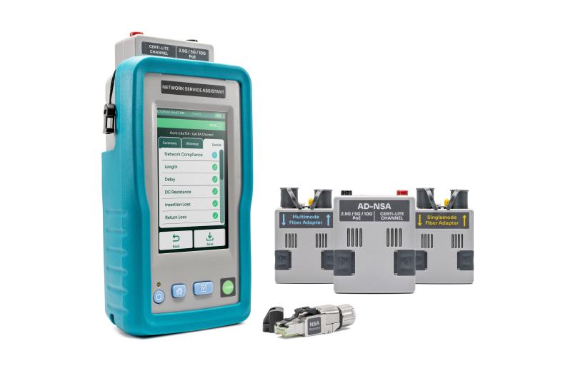 The Network Service Assistant (NSA) is a hybrid test solution, that bridges the divide between qualification and certification, and features Certi-Lite technology. Certi-Lite follows the ISO 11891 and ANSI/TIA 1152-A single-ended testing for many of the same parameters used in bi-directional certification. Single-ended testing does not qualify for cable manufacturer warranty approval, but for those that do not require the warranty, and simply desire a deeper level of cable testing beyond just a simple wiremap, NSA’s is the first test solution to offer Certi-Lite.