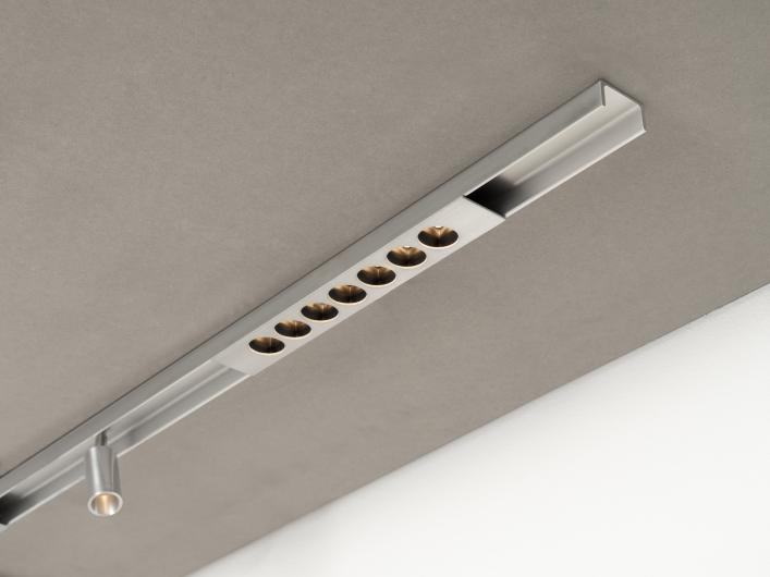Following last years "New Standard" system, a semi-recessed luminaire system adds to the family with the possibility of customising through lengths, lightsources and spotlights.