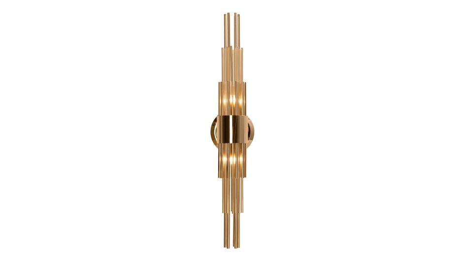This elegant wall light features long gold plated brass tubes that give the design a whole exclusive and deluxe look, setting another level by its distinctive appearance. This recipe of rich materials and sleek lines inspired by art-deco architecture make the Streamline wall sconce desirable.
