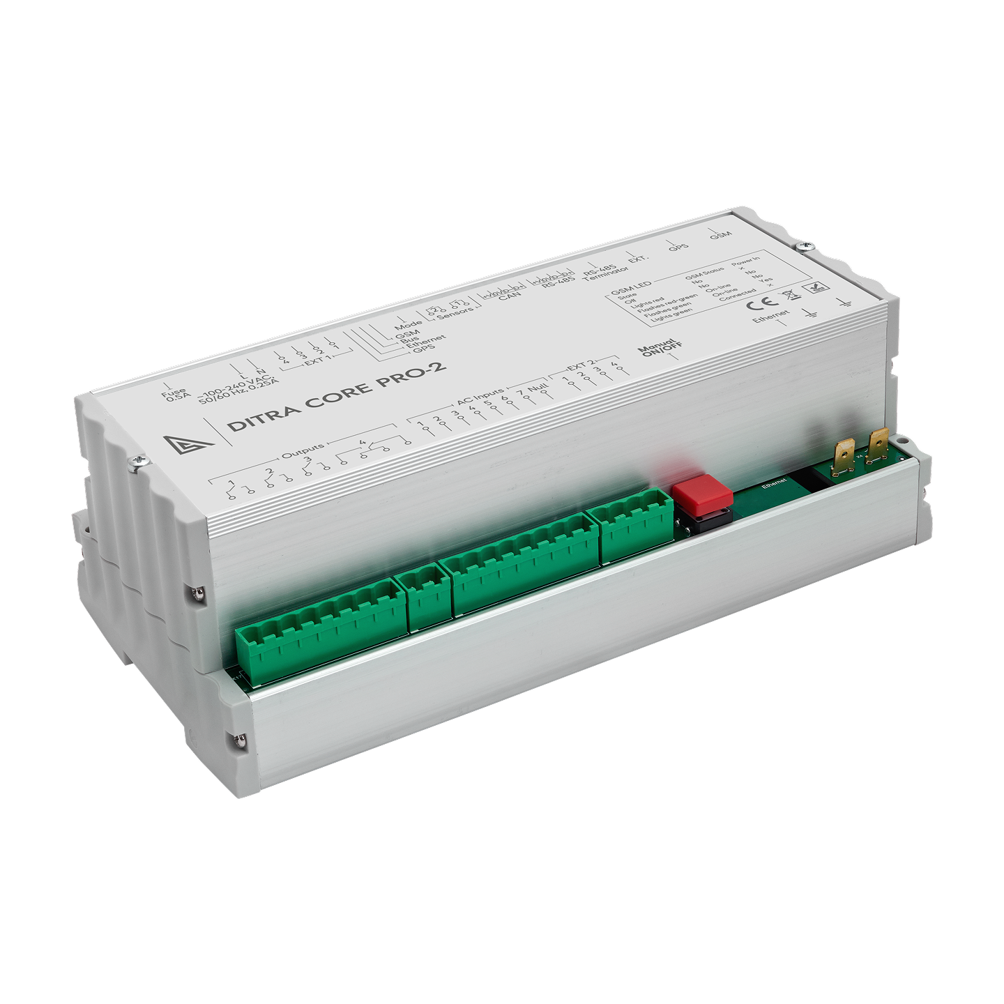 The Node provides dimming via DALI/DALI-2, PWM, 1–10 V and supports individual load switching. Data is transmitted directly to the server over the cellular network, with configuration and monitoring performed through DITRA software.