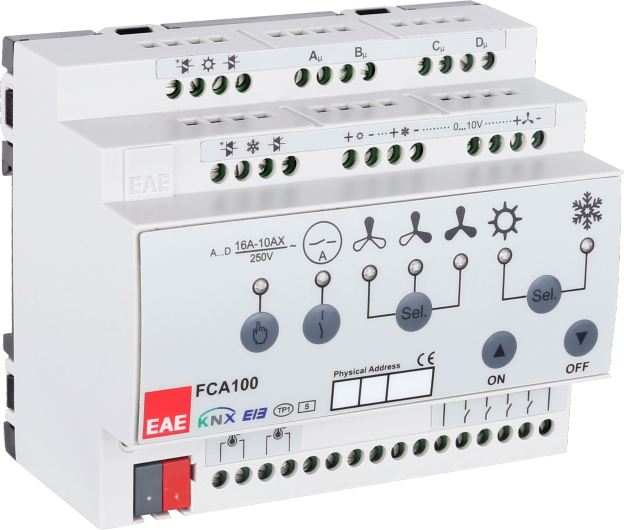 Fan Coil Actuator FCA100 covers HVAC systems of the electrical installation of room applications and offers following functions in one product.