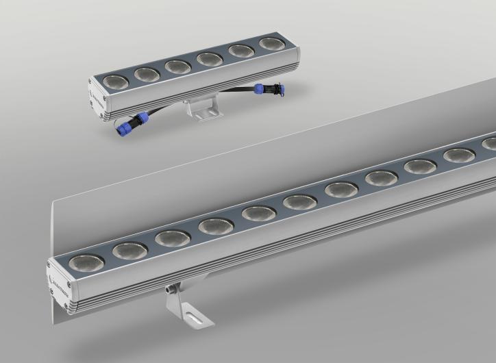 Elegant Max II is the new model of Elegant series, ideal for outdoor architectural applications. It is unique for wall washing due to the different wall bracket lengths and the maintenance of the pitch between the luminaires. It ensures the highest glare control through antiglare accessory offered as extra. It can also be offered (besides the input cable with IP68 connector offered as standard) with an extra output cable with IP68 connector, chain connection (30.5cm only in standard version). It is available upon request in different RAL colours. Marine treatment to meet the most demanding weather conditions available upon request.
