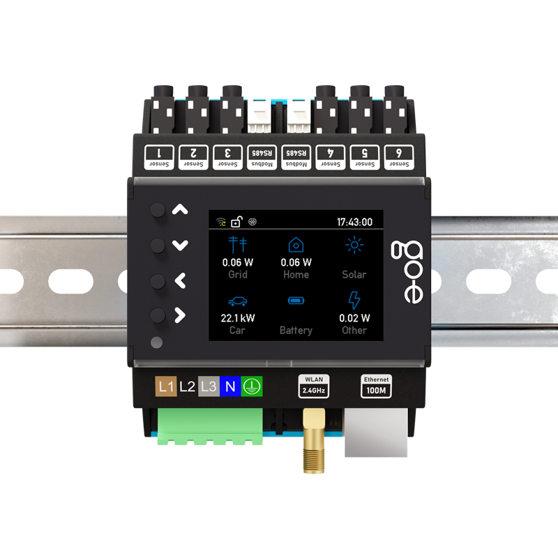 Take your charging experience to the next level with the go-e Controller. The Controller enables dynamic load balancing to avoid overloading the grid when charging your vehicle. The Controller also helps you easily use surplus power from your solar panels and monitor your energy flows. To further optimise your charging process, we recommend a holistic solution consisting of a go-e Charger and an energy management system such as the go-e Controller.