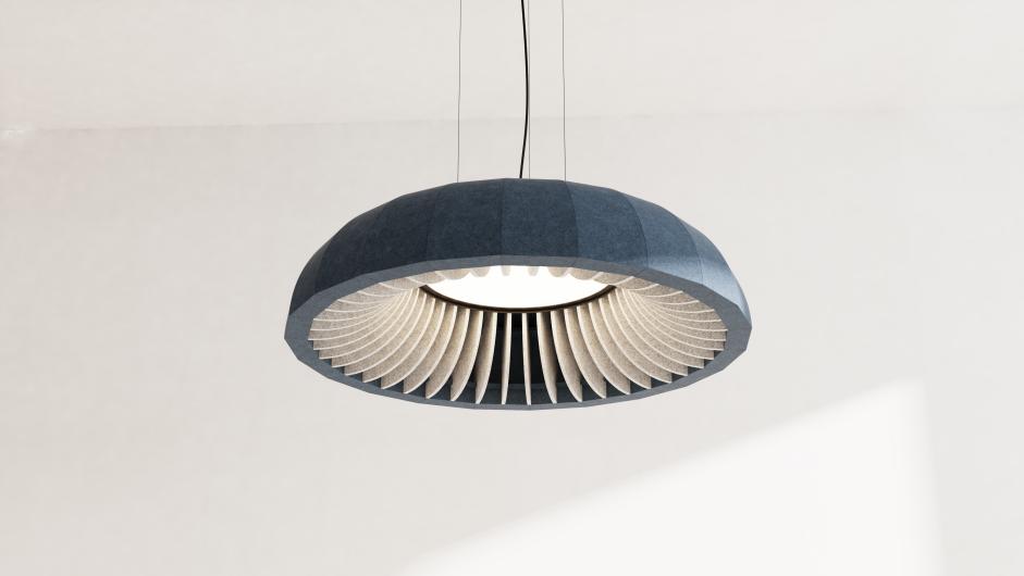The shape of the lamp with an inner side of organically shaped slats offers high acoustic efficiency and a nice diffusion of light. Toad also has a large mass and plenty of surface area. This is the perfect recipe for a high-quality acoustic lamp.