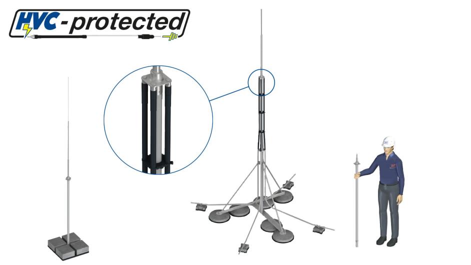 free-standing resp. unsupported air termination pole systeme for HVC-50 and HVC-85 for HVC-exterior pole installation resp. meshed systems