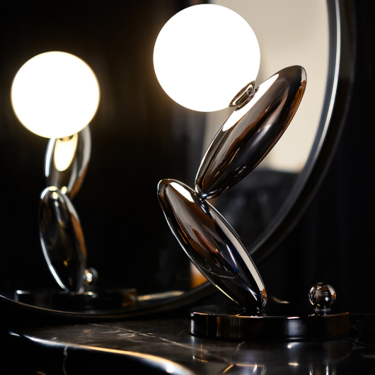 Innovative design The tactile experience becomes a key element of interaction with the collection. The table lamps are controlled via an accent metal ball, which is not only a functional element but also an important artistic component. This ball serves as a bridge between the user and the light, turning the simple act of switching on the lamp into a special ritual.