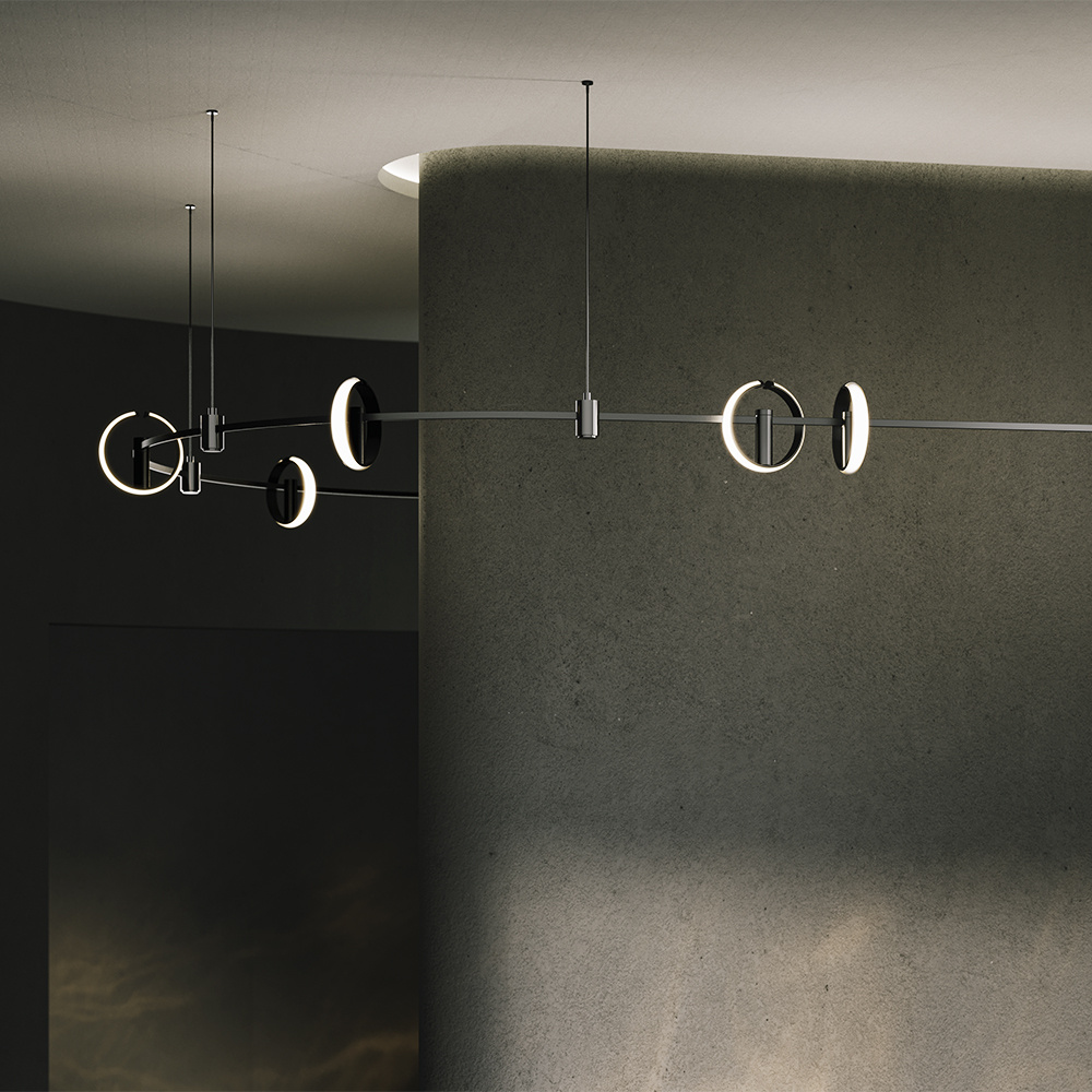 When developing this collection, special attention was paid to the shape of the LED cord so that it would make an oval. For this purpose, the weight of the cord and how it bends was taken into account. The task was also to make it affordable. For this reason, metal pipes were made collapsible, and a special cast metal element was created in the middle. The LED cord was made matte to make it look better and to be tactilely pleasing.