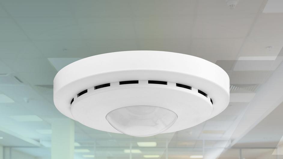 In addition to the 3 sensors for presence detection, the passive infrared presence detector is equipped with additional room climate sensors. The detector not only ensures a reliable 360° presence detection, monitoring of the CO2 and VOC mixed gas concentration it also measures the temperature and humidity in a respective room.