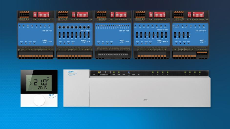 Sleek, intelligent and standardized is the series of SBS IOM fieldbus modules from OAS. This consists of compact fieldbus modules with inputs and outputs for analog and digital signals. The fieldbus modules acquire the signals of the building services equipment and pass them on to the controllers. Due to the standardized communication via Modbus RTU, no further gateways are required.