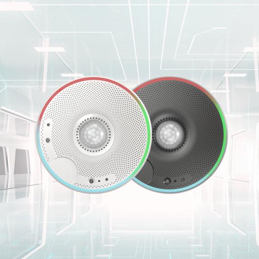Der Smart Sensor viaSens ist ein kompakter Multi-Sensor für moderne Raumautomation: Über Sensorfusion misst er u.a. Präsenz, Temperatur, Luftfeuchte, Luftqualität (VOC/CO₂), Helligkeit und Geräuschpegel – ideal für Energieeffizienz und ein gesundes Raumklima. Bluetooth-Mesh-Netzwerk und verschlüsselte MQTT-Kommunikation machen ihn IoT-reaktionsfähig. Ein LED-Ring signalisiert Raumstatus oder Luftqualität. viaSens lässt sich schnell installierten, per App oder Gateway in ein Gebäudesystem integrieren und bietet so smarte, bedarfsgesteuerte Steuerung von Lüftung, Klima und Licht.