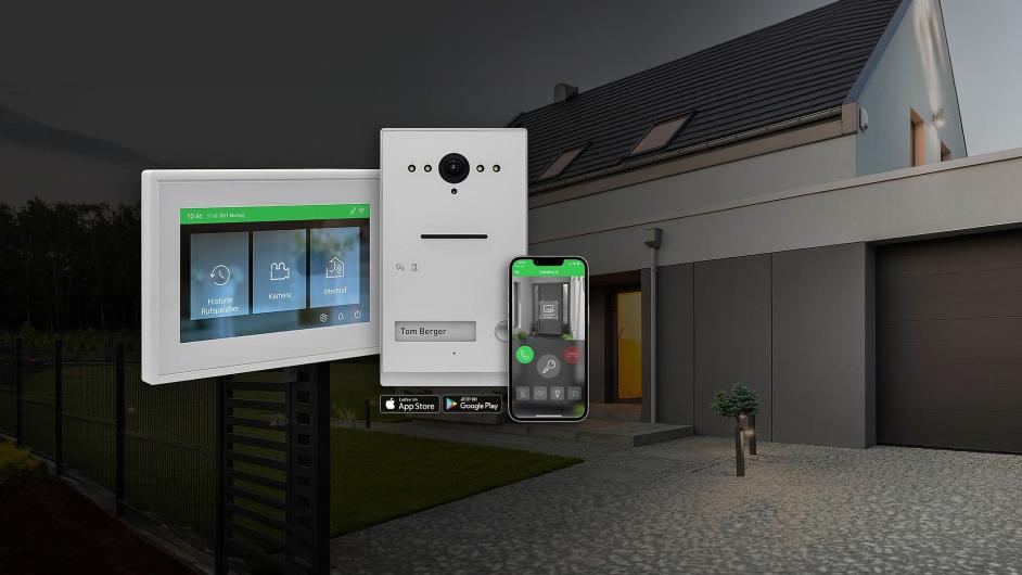 Die Listo Türstation für das Ein- und Zweifamilienhaus erlaubt die HD Video-/Audio-Besucherkommunikation im digitalen 2-Draht TwinBus IP System.