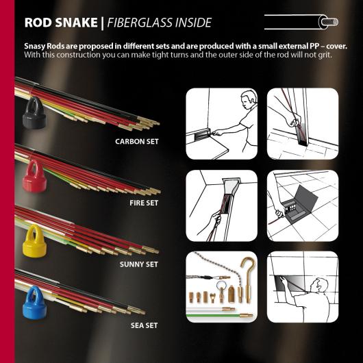 Snasy pushing rods are a great solution for any installation without existing cable guides or pipes: they therefore offer a wide range of applications in electrical installation, for example in drywall and false ceilings.