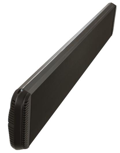 Rahmenloses Wand-Heizelement mit leicht abgerundeten Ecken der Baureihe VL-F für die Aufputz-Montage an der Wand.